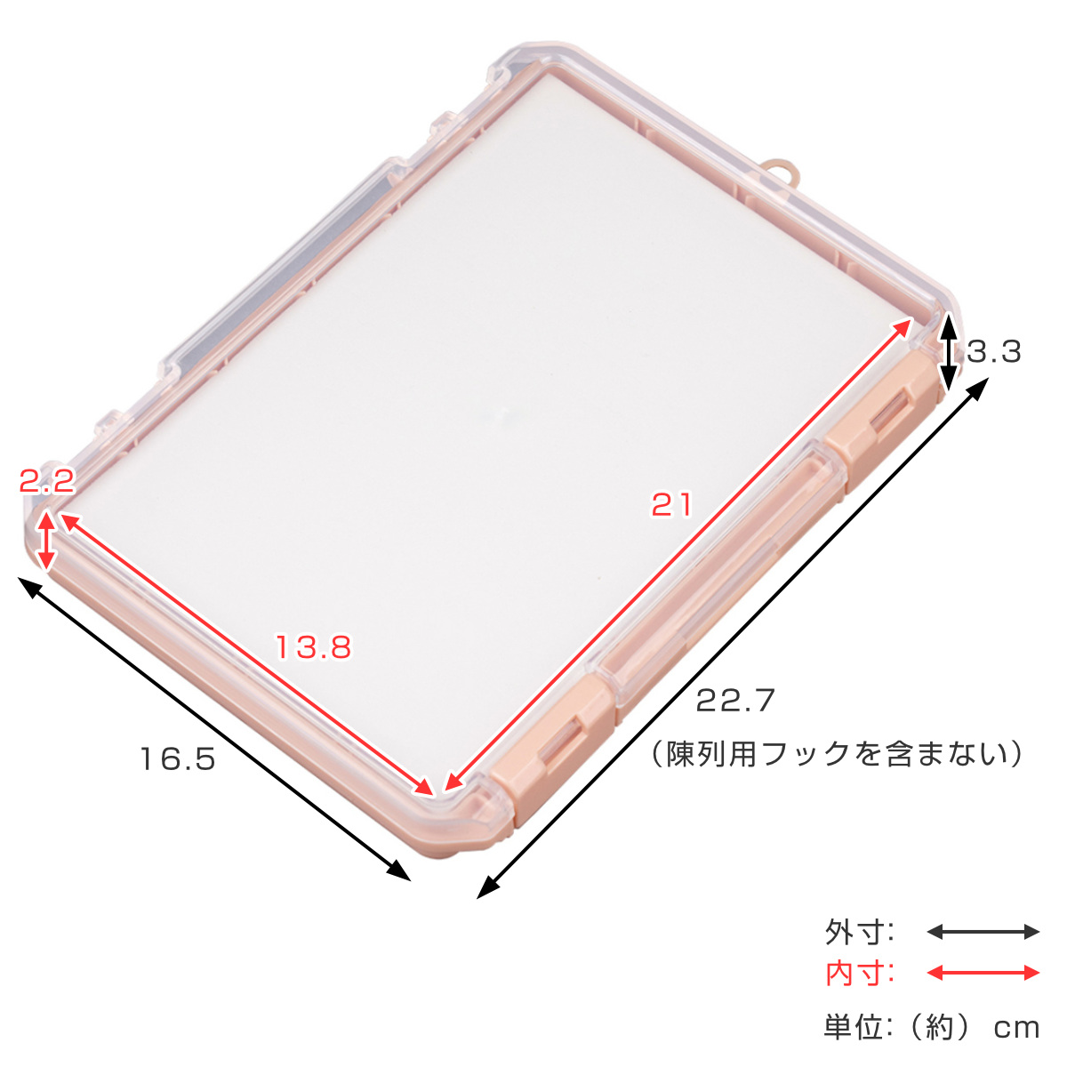 | サイズ | 外寸:約 幅22.7×奥行16.5×高さ3.3(cm) 内寸:約 幅21×奥行13.8×高さ2.2(cm) ※外寸は陳列用フックを含まないサイズ ※内寸はクッションを含まないサイズ |