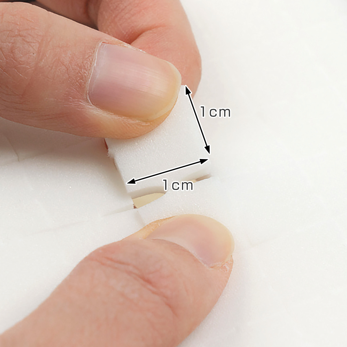 収納物に合わせて型抜きできる、切れ目が入ったクッションを3枚付属しています。手で簡単にカットでき、ハサミを使えば好きな形に切ることも可能です。