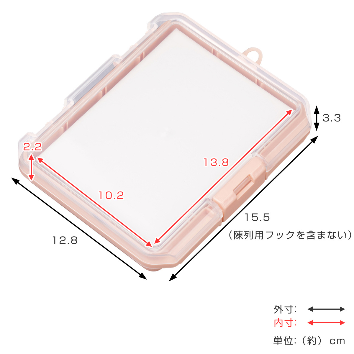 | サイズ | 外寸:約 幅15.5×奥行12.8×高さ3.3(cm) 内寸:約 幅13.8×奥行10.2×高さ2.2(cm) ※外寸は陳列用フックを含まないサイズ ※内寸はクッションを含まないサイズ |