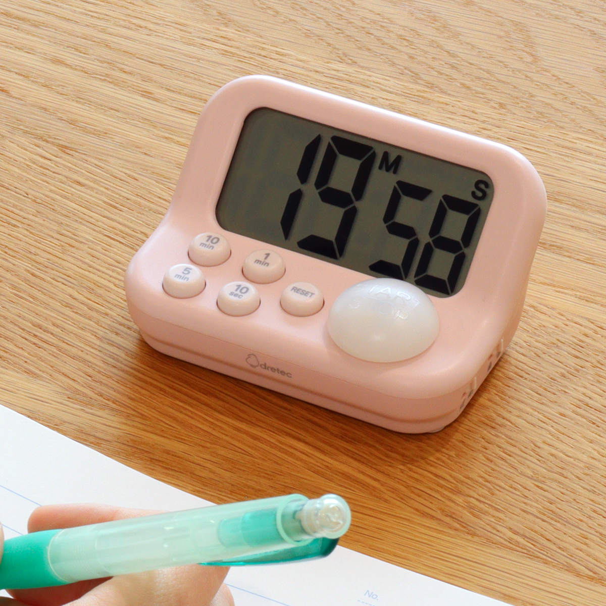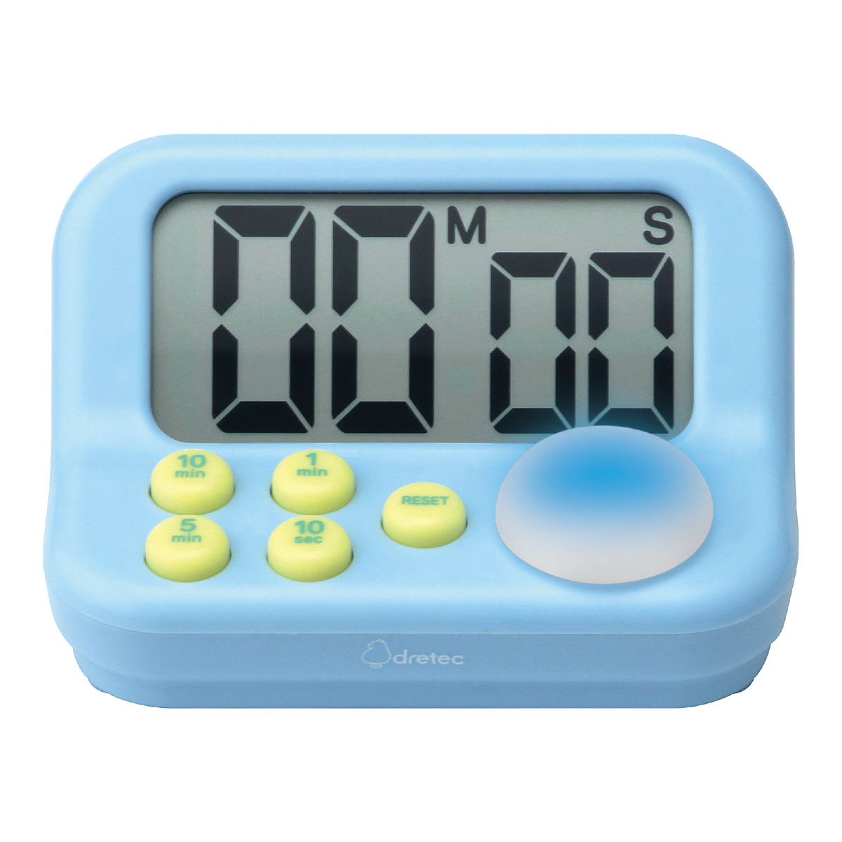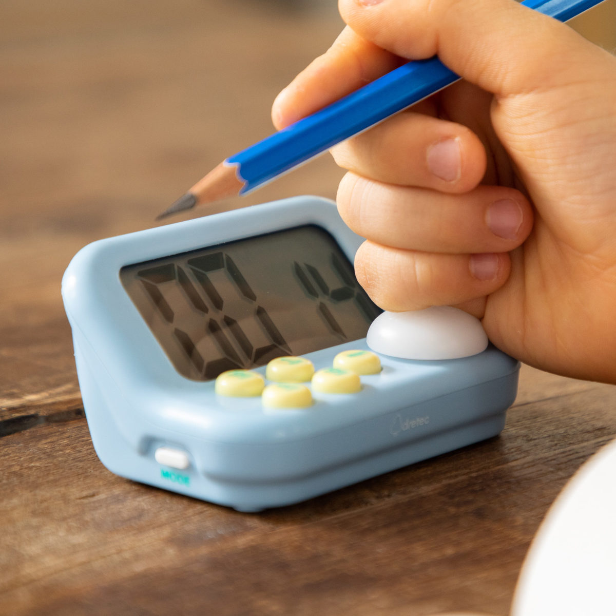 大きな画面に大きな文字で、はっきりと時間を認識できます。タイマーは、10分、5分、1分、10秒それぞれのボタンを押すだけの簡単設定。小学生のお子様でも簡単に操作でき、自分で時間の管理ができます。