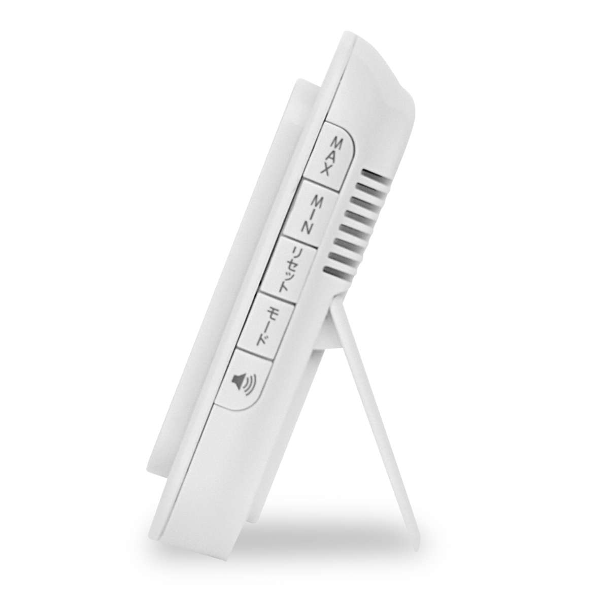 側面のボタンでアラームとランプの機能をOFFにすれば、温湿度表示のみで使用することができます。