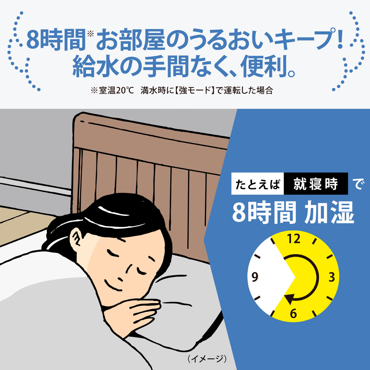 | 備考 | 【定格加湿能力】 480mL/h 【適用床面積の目安】 木造和室:~8畳 プレハブ洋室:~13畳 【連続加湿時間】 強:8、中:16、弱(静音):32 |