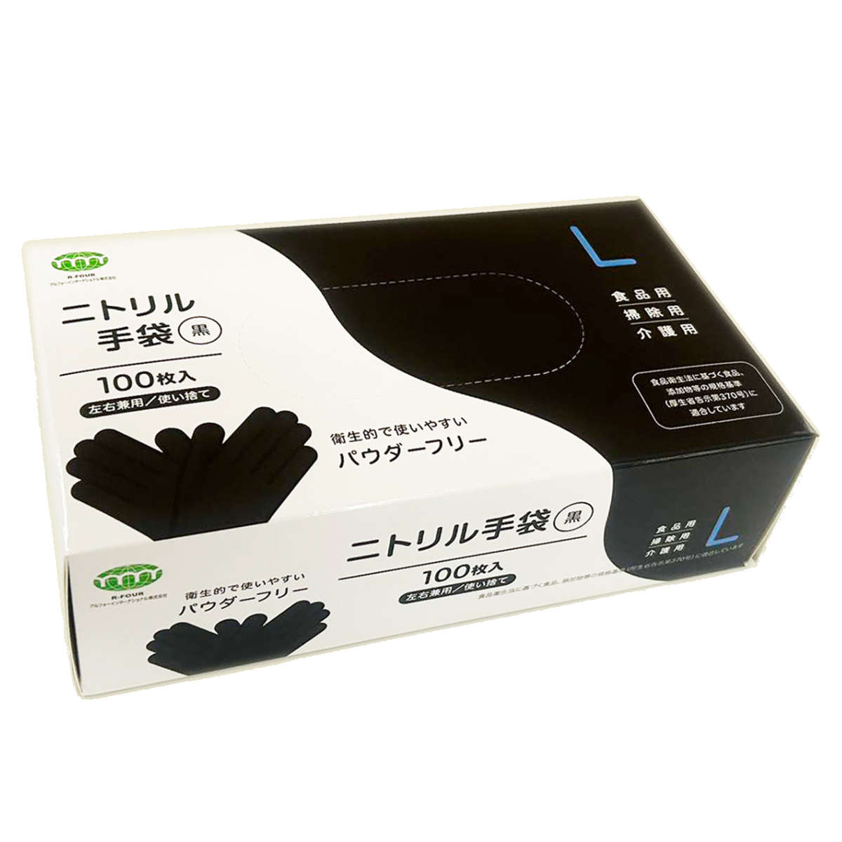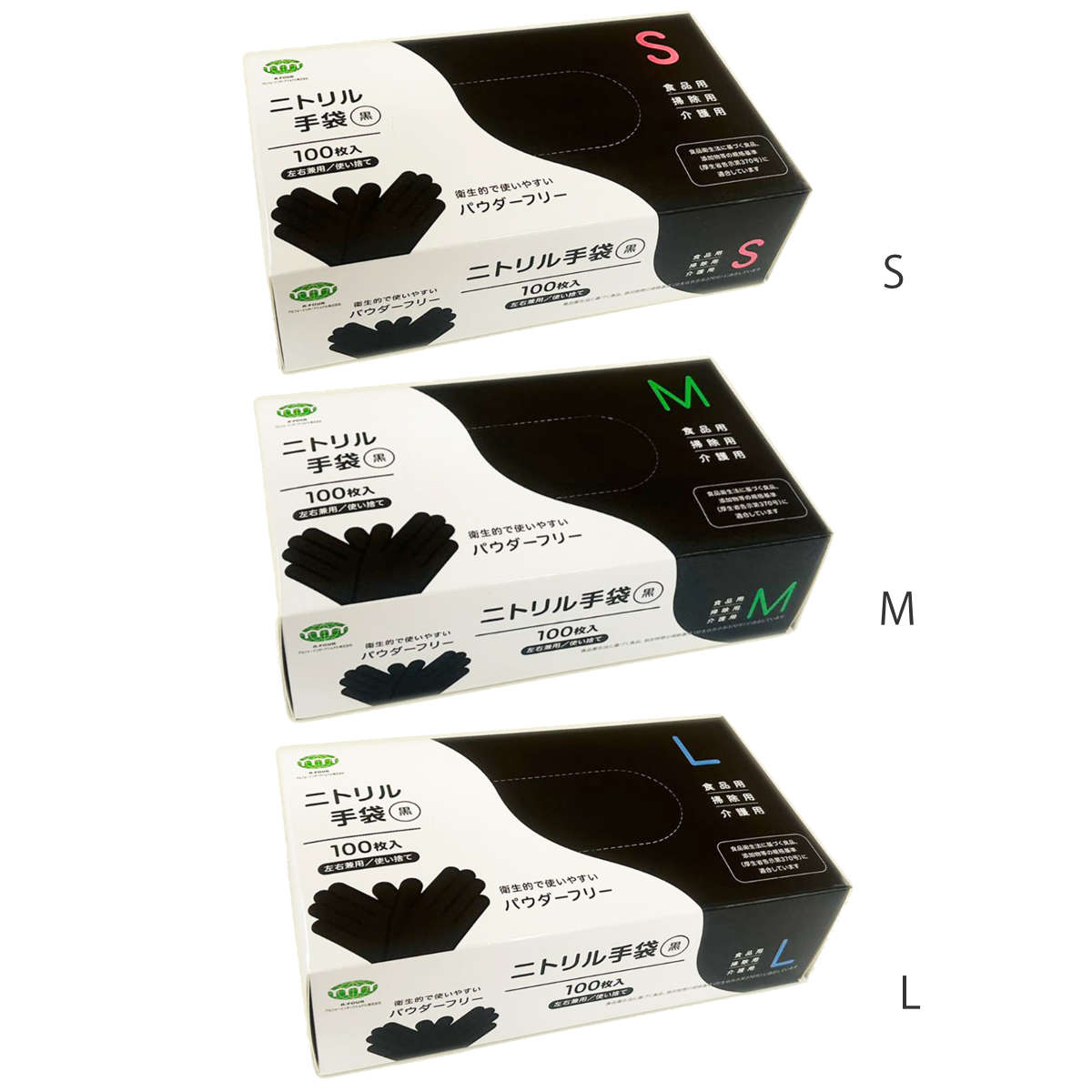 手袋 ニトリル手袋 100枚 S M L ブラック 左右兼用 パウダーフリー