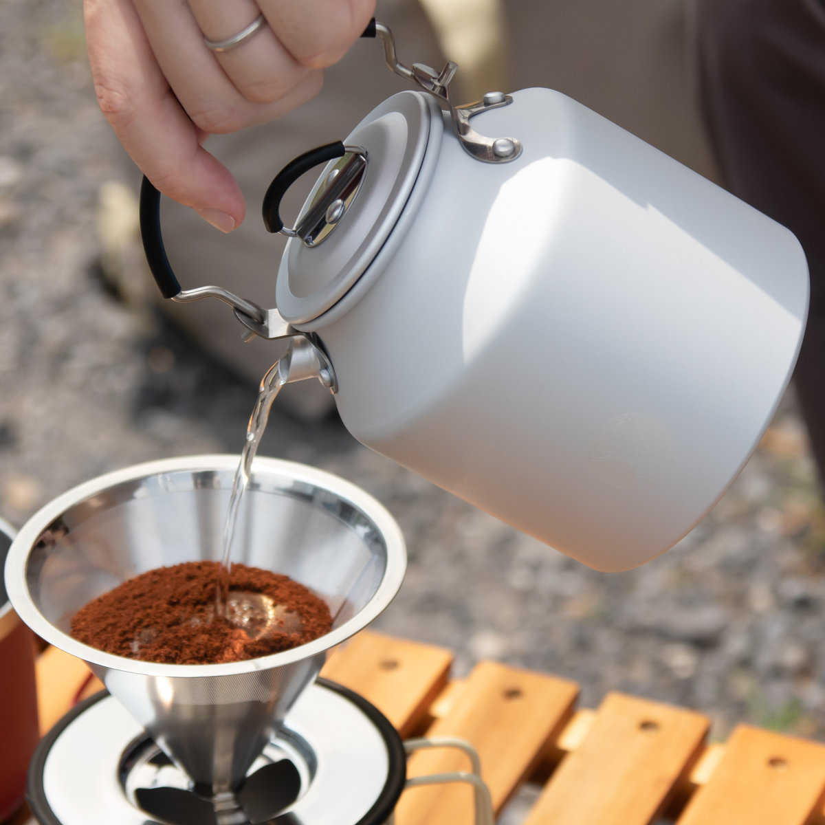 容量は625ml(満水時は770ml)で、ソロキャンプや少人数でのご使用にぴったりのサイズ。熱伝導に優れたアルミ製のケトルなので、屋外でもスピーディーにお湯を沸かせます。