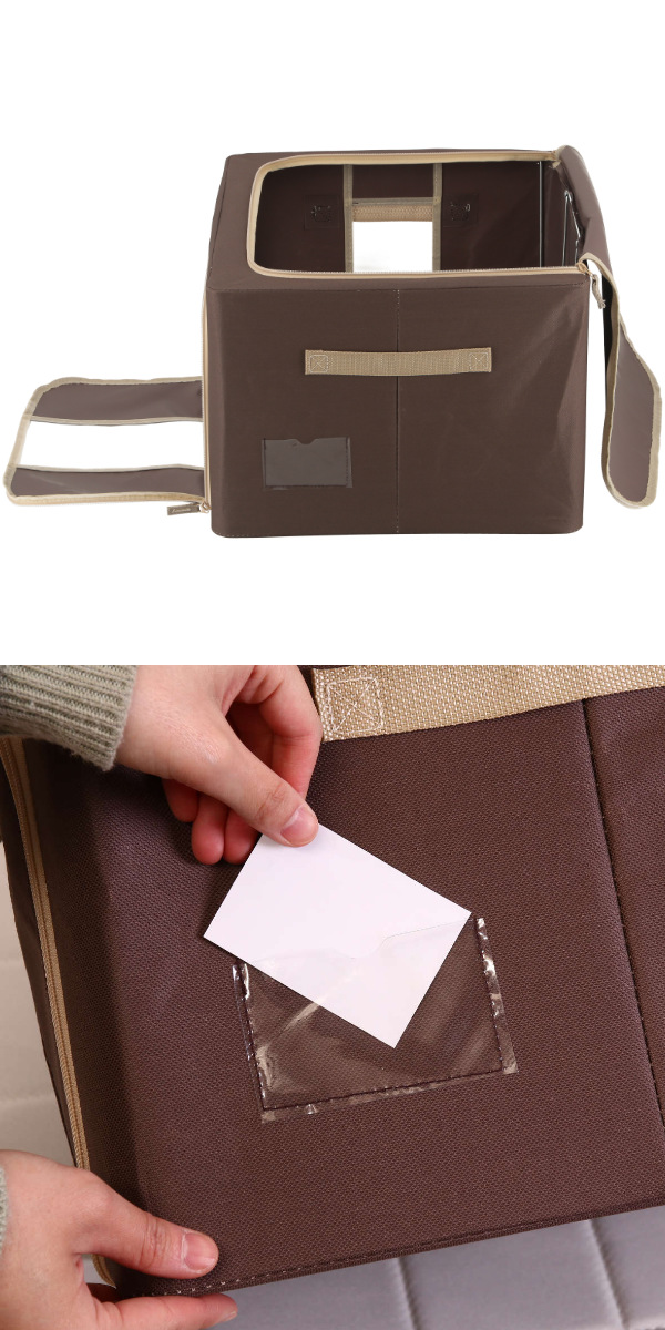 ネームタグを差し込めるポケットが側面にあり、収納物の管理がしやすく整理整頓に役立ちます。
