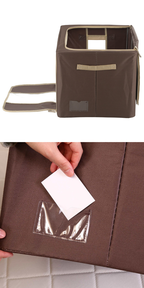 ネームタグを差し込めるポケットが側面にあり、収納物の管理がしやすく整理整頓に役立ちます。