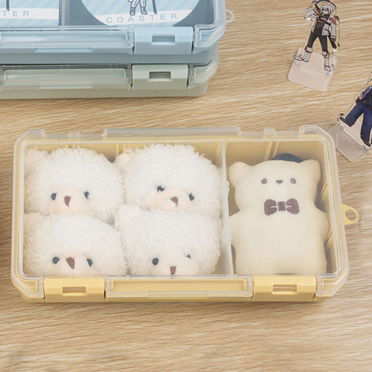 | 備考 | 【収納めやす】 トレーディングカード (スタンダードサイズ 6.3×8.8cm):130枚×3列(最大390枚) ぬいぐるみ (7×5cm):6個 |