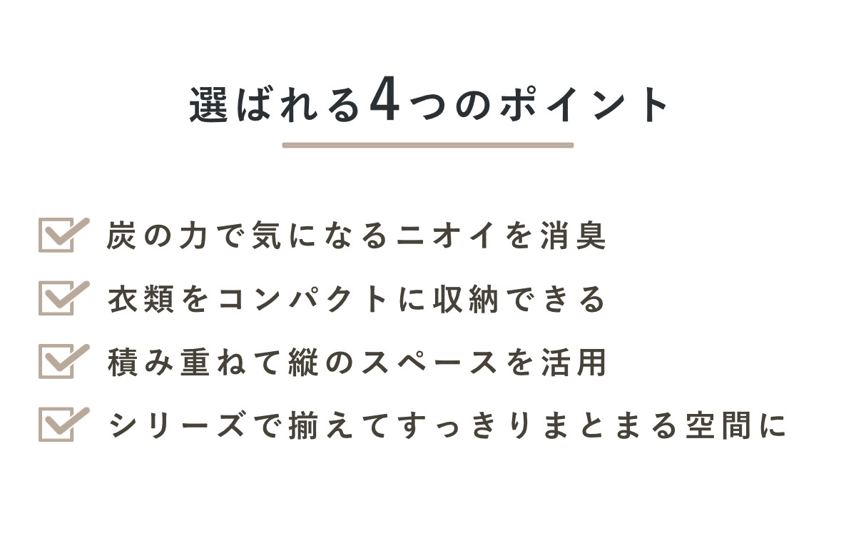 布団収納、着物収納、衣類収納、ハンガー収納まで、用途に合わせて選べるサイズを展開しています。シリーズで揃えて使用すると、統一感のあるすっきりとした収納空間を演出できます。