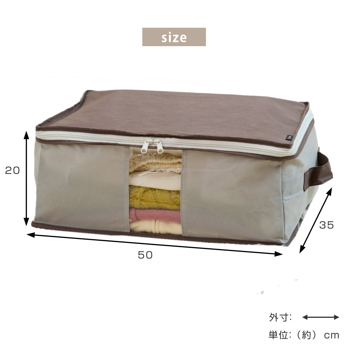 | サイズ | 約 幅50×奥行35×高さ20(cm) 持ち手を含まないサイズ |