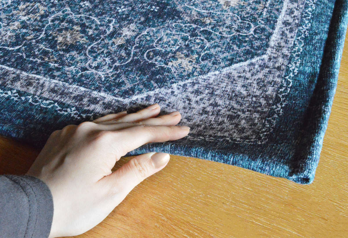 マットは、シェニール織りの生地で、やさしい手触りが特徴です。毛足が短く、お手入れがしやすいのでいつも清潔に保つことができ、小さなお子様やペットがいるご家庭にもおすすめです。