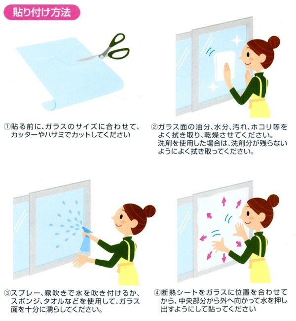 ●水だけで簡単に貼れる断熱シートです。