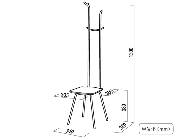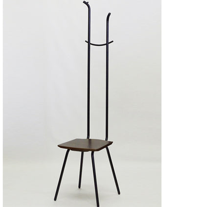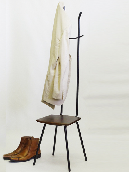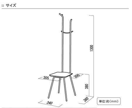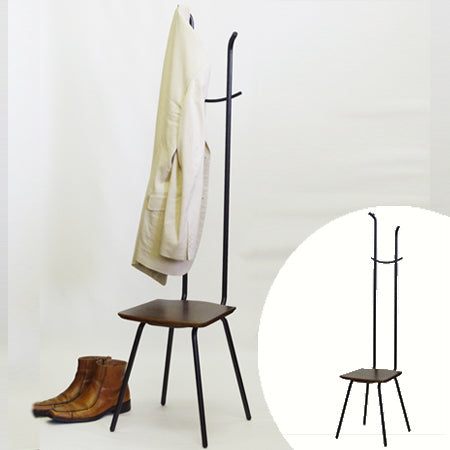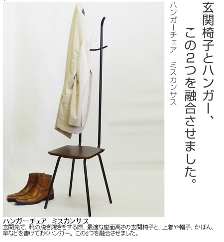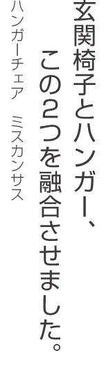 ハンガーチェア ミスカンサス 玄関先で、靴の脱ぎ履きをする際、最適な座面高さの玄関椅子と、上着や帽子、かばん、傘などを書けておくハンガー。この2つを融合させました。 | |