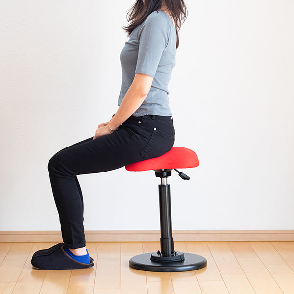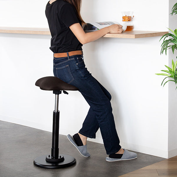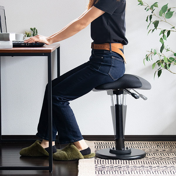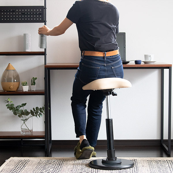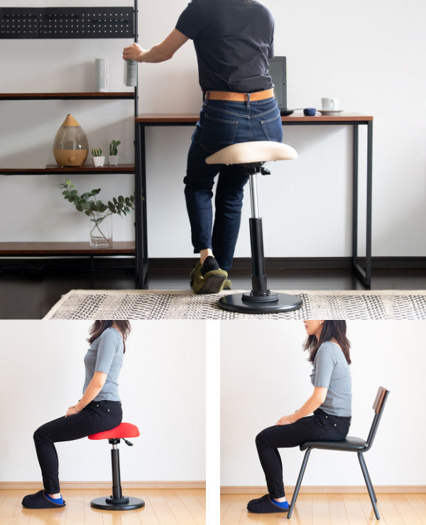 座り姿勢の作業では、立っている状態に比べ脊柱の負担が180%と高く、着座時、上半身の荷重が座面に分散に圧迫されることでお尻から太もも、さらには腰にも負担がかかることで、痔や腰痛持ちのユーザーは悩まされてきました。それをスタンディングスタイルに切り替えることで軽減することができます。また、立ったり腰かけたりすることで、作業にメリハリが生まれ集中力が持続します。