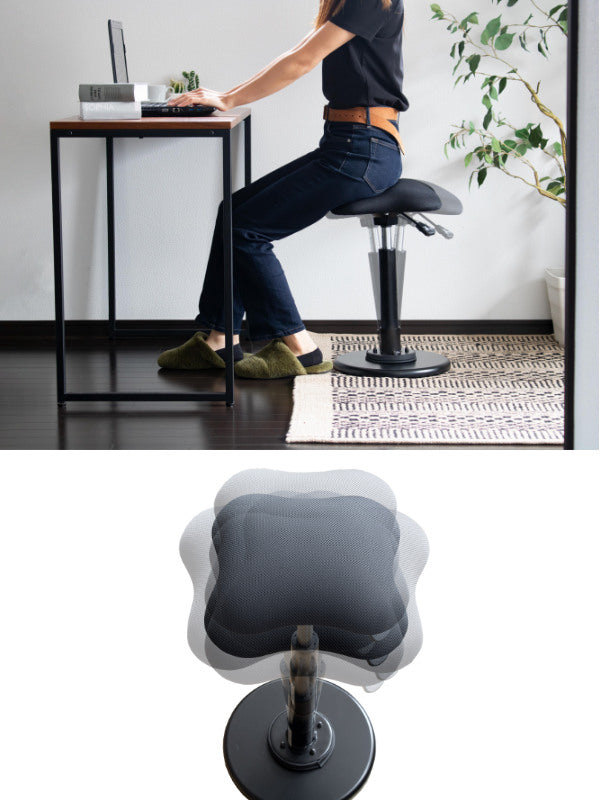 前後左右にユラユラと揺れることで腰回りが動かせて、座ったまま動かないということが減り、座りっぱなしのデスクワークにちょっとした運動が取り入れられます。テレワークなど一人での作業が続くときにも眠気防止になり、作業効率がアップします。また、オフィスで短い時間の打ち合わせなど、さっと腰かけるのにも丁度いいチェアです。