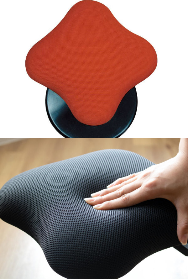 シートは花がモチーフになっており、座る角度によって花の形状がお尻にフィットして、円形にはない座り心地を生み出しています。座面は、クッション性と通気性に優れた厚天ウレタン・ダブルラッセル生地を使用しています。また、「シックハウス症候群」原因物質の一つホルムアルデヒドが放散量の最も少ない最高ランク「エフ・フォースター」の板材を使用しております。