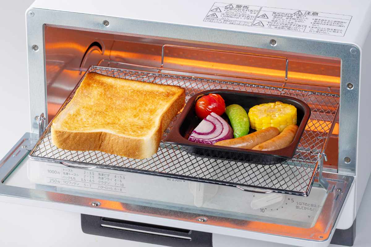 2枚焼きのオーブントースターなら、目玉焼きとおかず、トーストを一度に並べて同時に調理できるので、疲れている朝や、少し楽をしたいときにも便利です。野菜ソテーや焼き鮭、ソーセージなど、おつまみにもう一品欲しいときにもサッと焼けます。同時調理で時短・効率アップを実現しましょう。