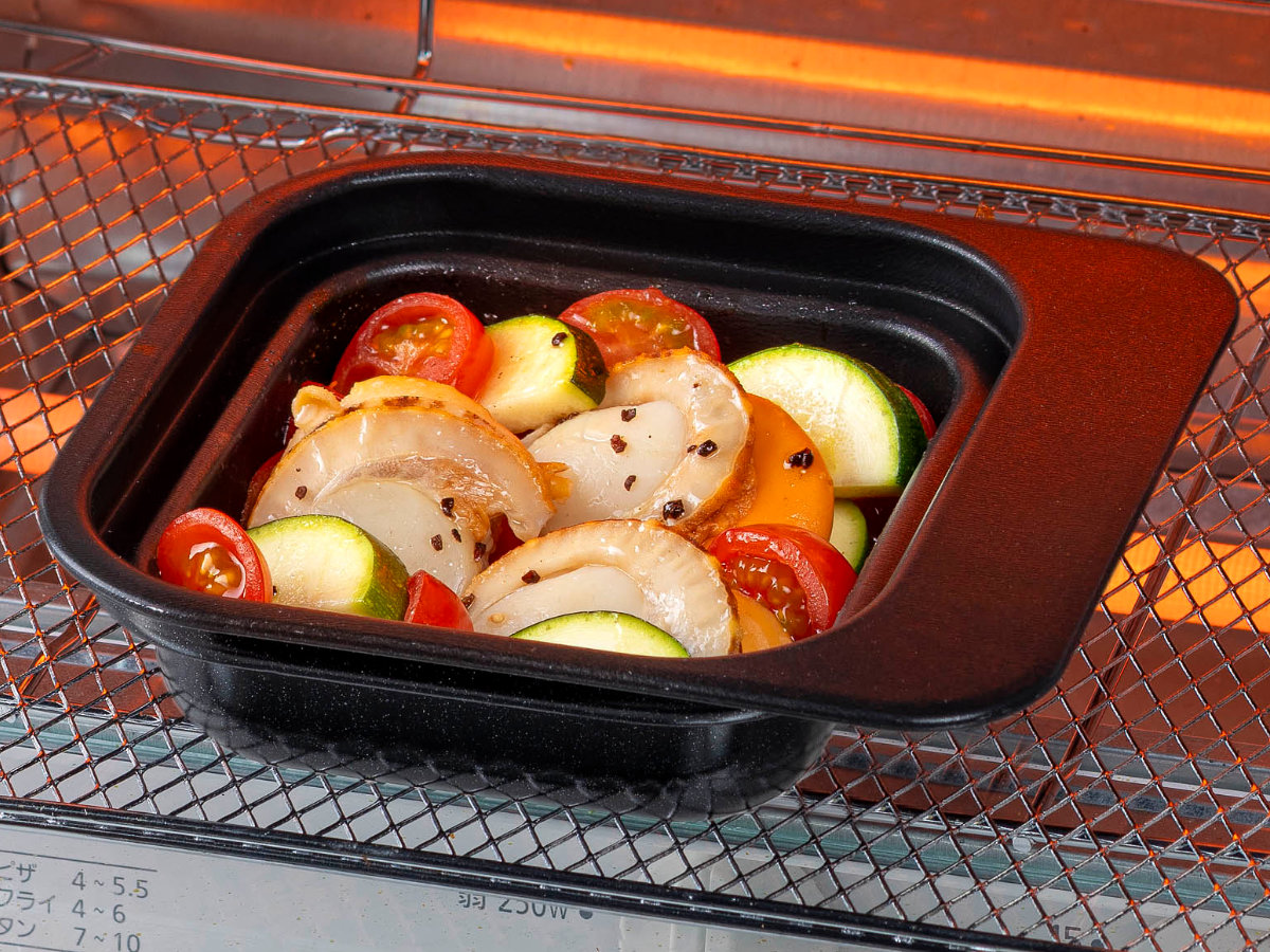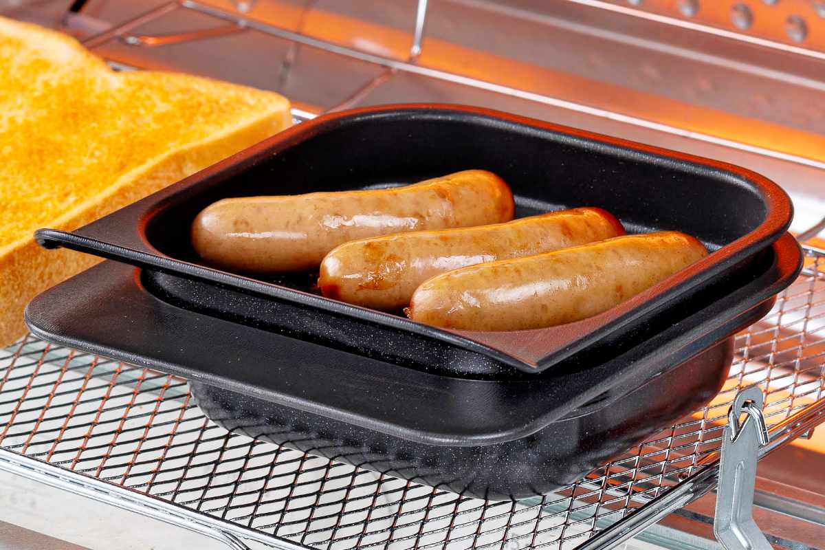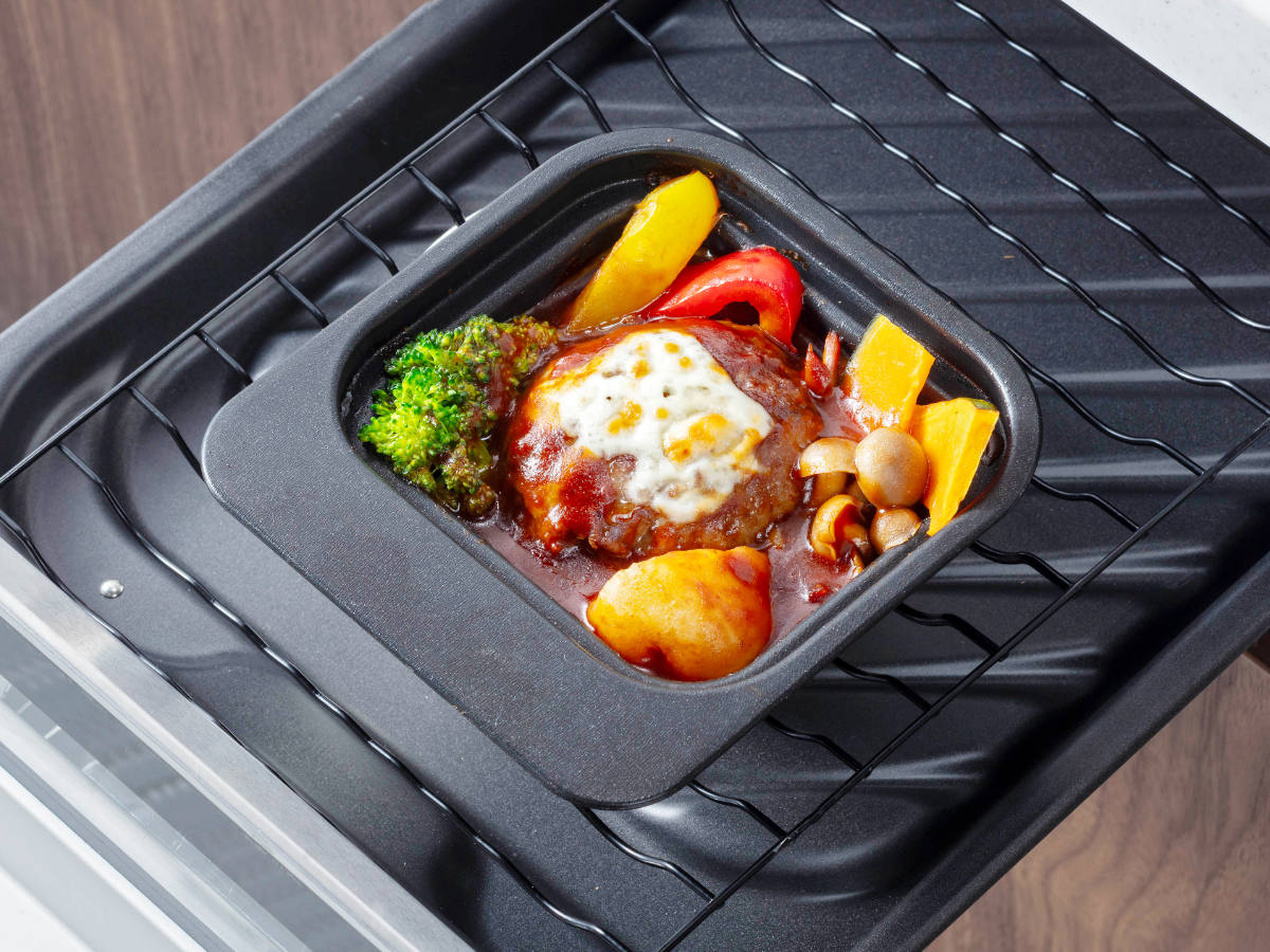 オーブントースター用の深型プレートです。厚みのある構造で汁気の多い食材も安心です。油や汁が飛びにくく、庫内を清潔に保てます。