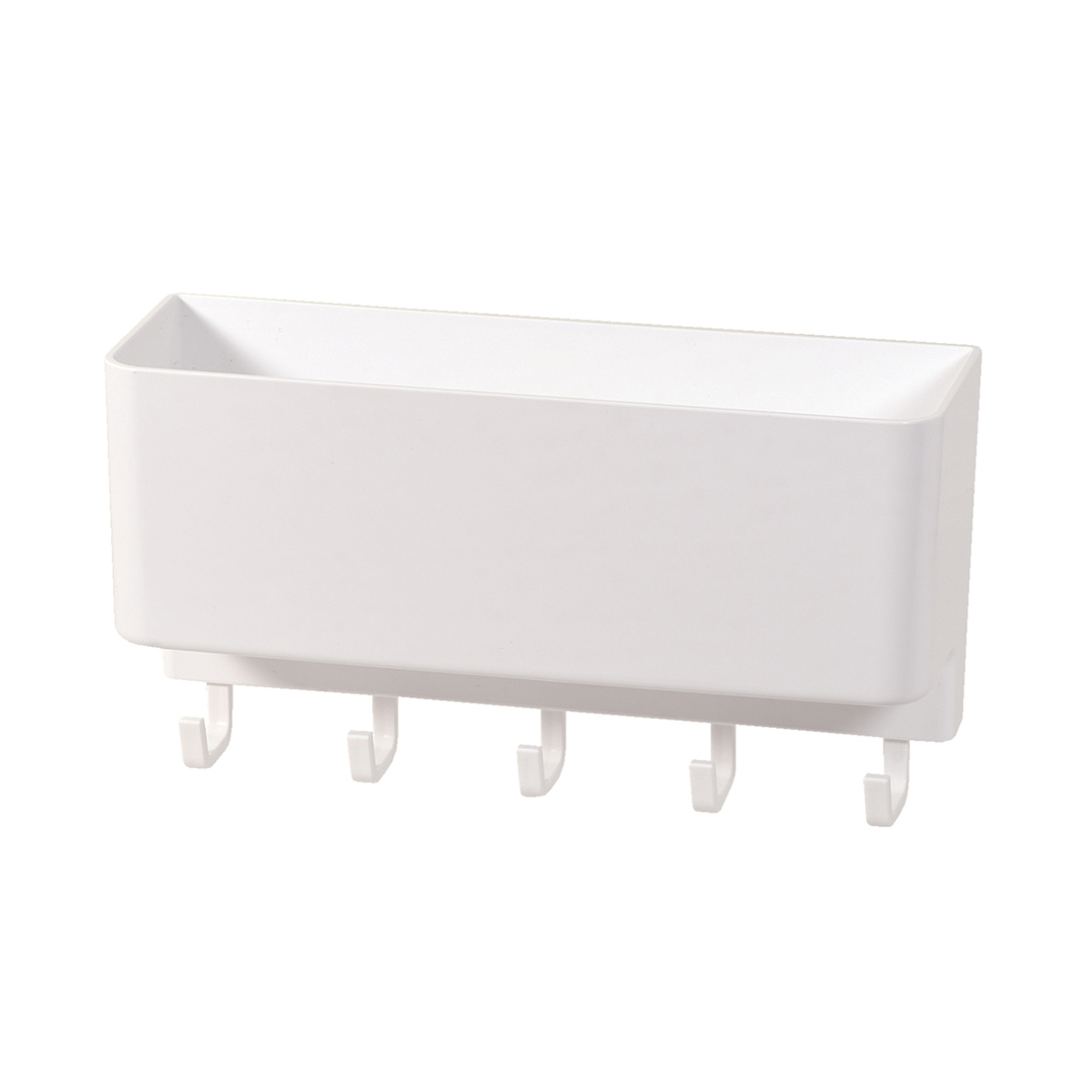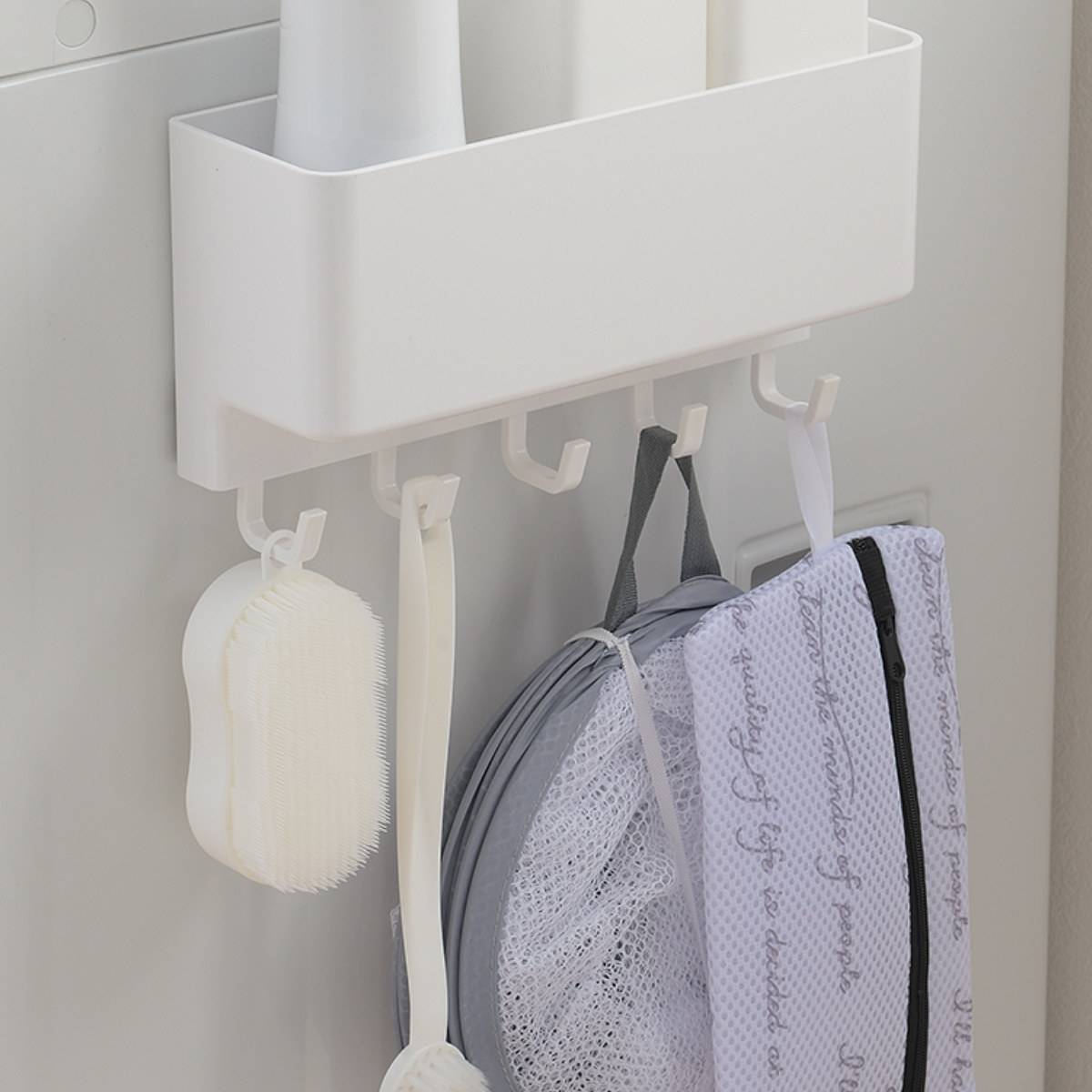 本体には便利なミニフック5つが付いており、ブラシや小物などのランドリー用品を掛けて収納できます。フックはお好みの位置に調整可能なので、収納するアイテムや設置場所に合わせてお使いいただけます。