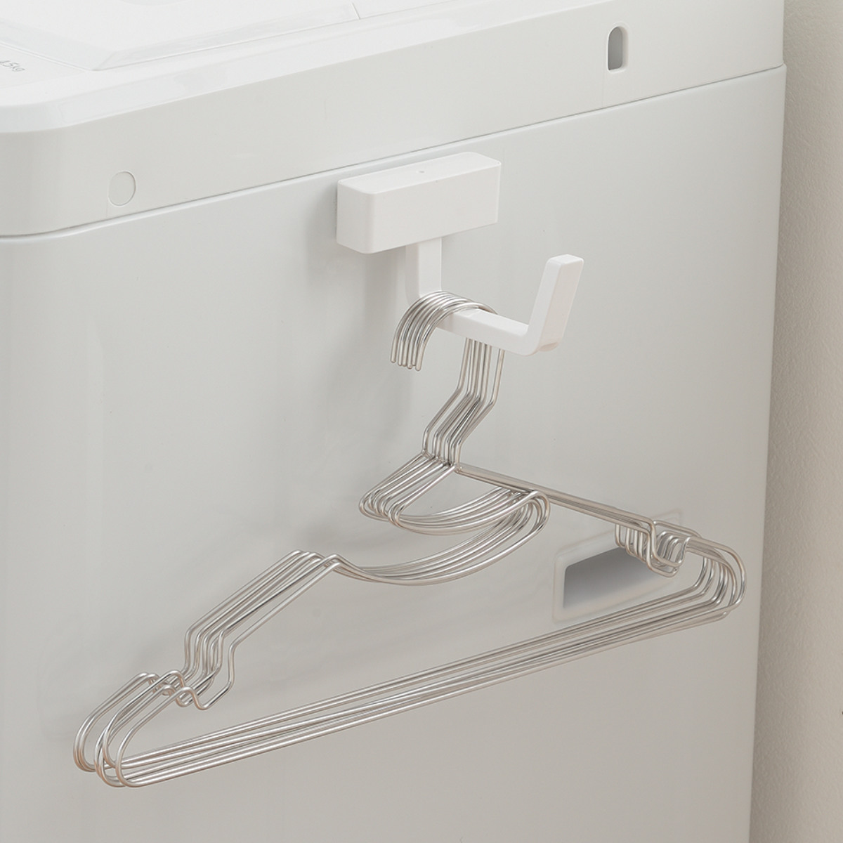 マグネットで簡単に取り付けができるハンガーホルダーです。省スペース設計なので洗濯機横の隙間を活かし、バラバラしやすいハンガーをまとめて収納できます。シンプルなデザインで、洗濯機周りをスッキリと整った印象にしてくれます。