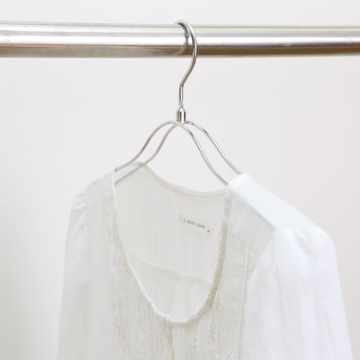 錆びにくく耐久性に優れているので、長く清潔に使用できるハンガーです。シンプルでかさばらないデザインなので洗濯物を干した後、そのままクローゼットに収納していただけます。ハンガーの移し替えの必要が無いので毎日の家事がぐんとラクになります。