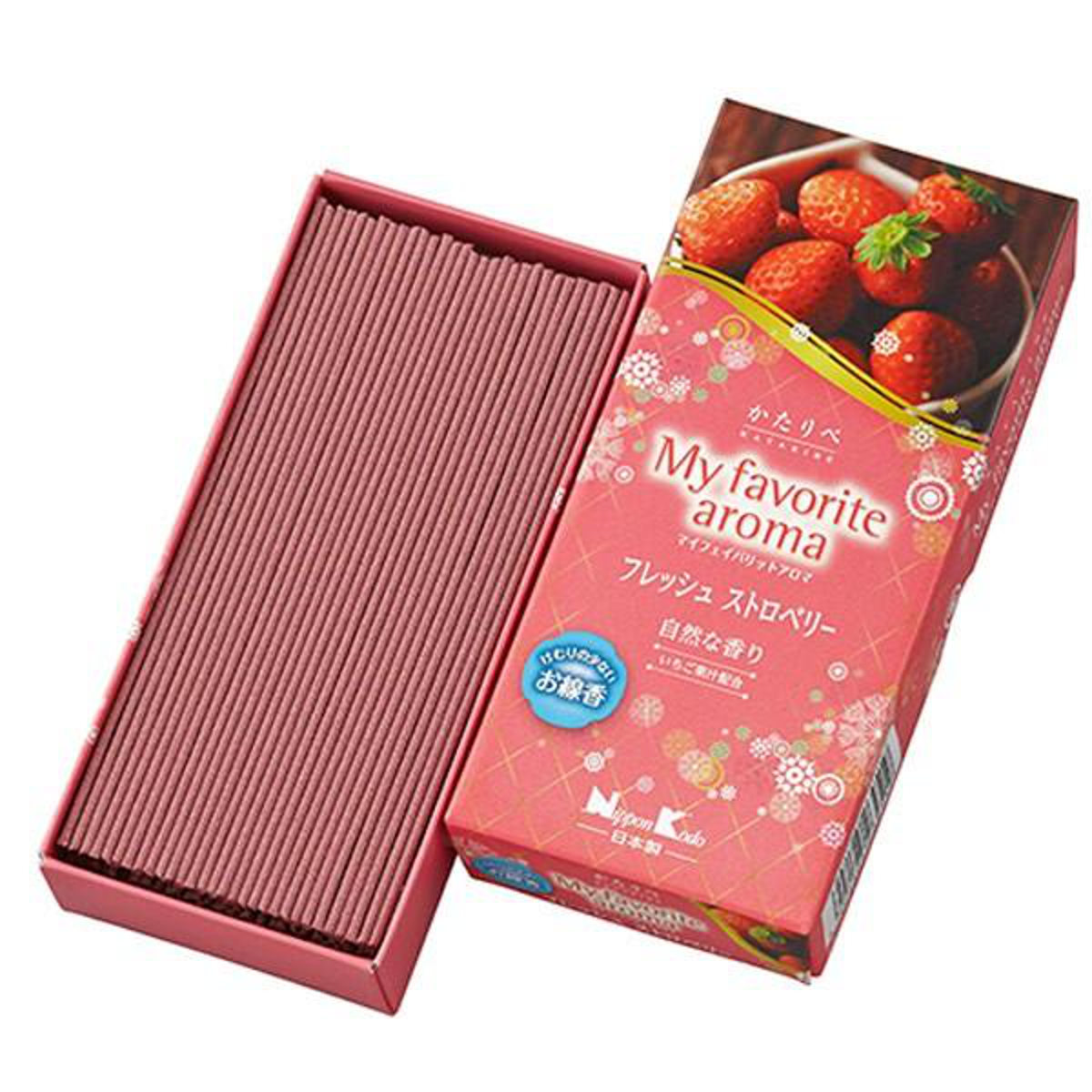 自然な香り、本物の香りを追求した「かたりべ」シリーズ。けむりが少なく、香りがお部屋の中に優しく広がり、残り香もさわやかです。甘酸っぱく、みずみずしいフレッシュストロベリーの香りです。