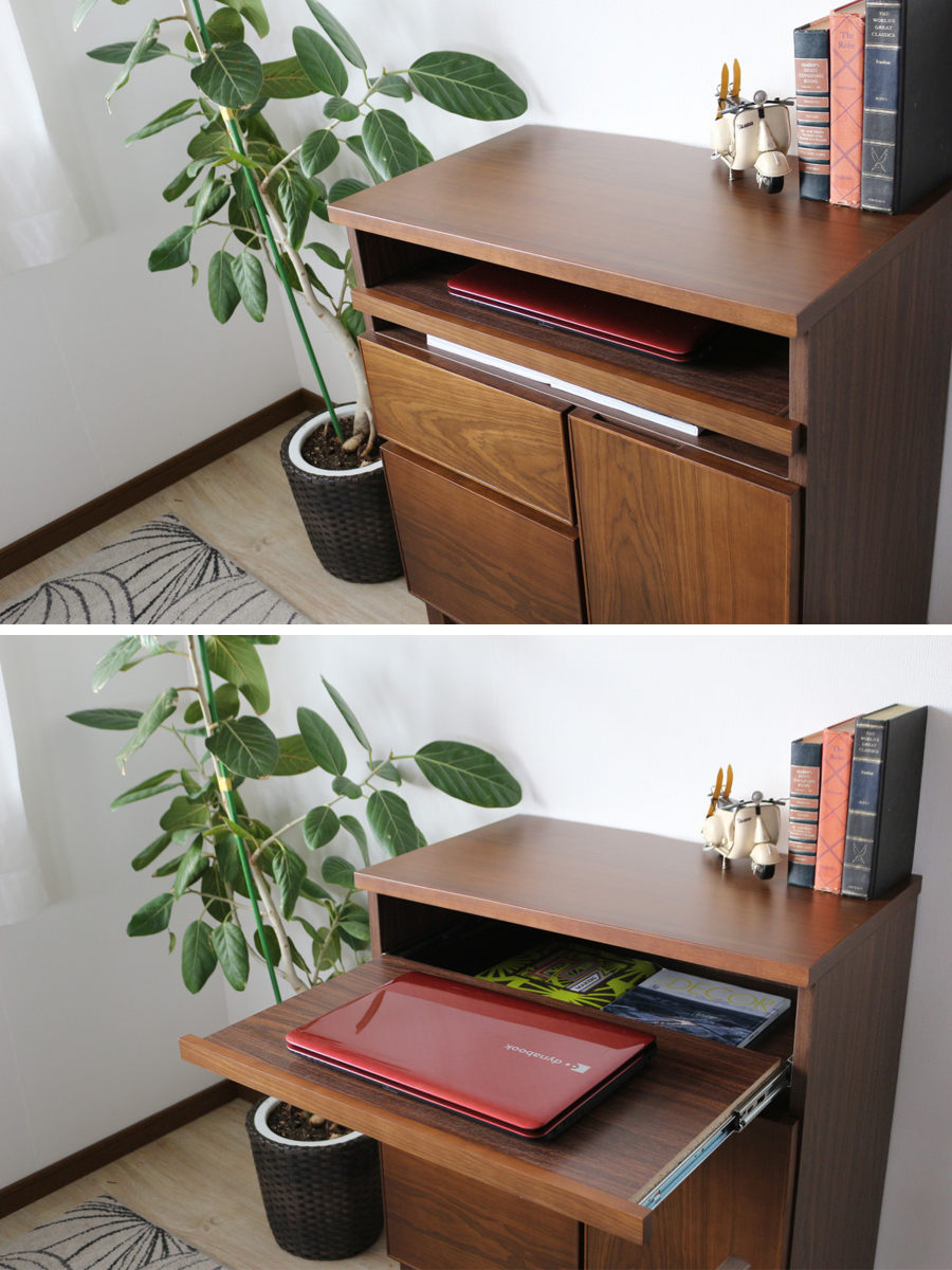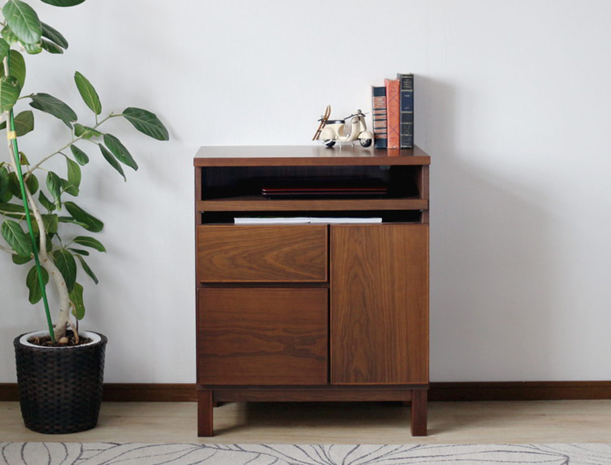 | 材質 | 天板、前板:天然木工芸突板 側板:プリント紙化粧繊維板 仕上げ:ウレタン塗装 |
