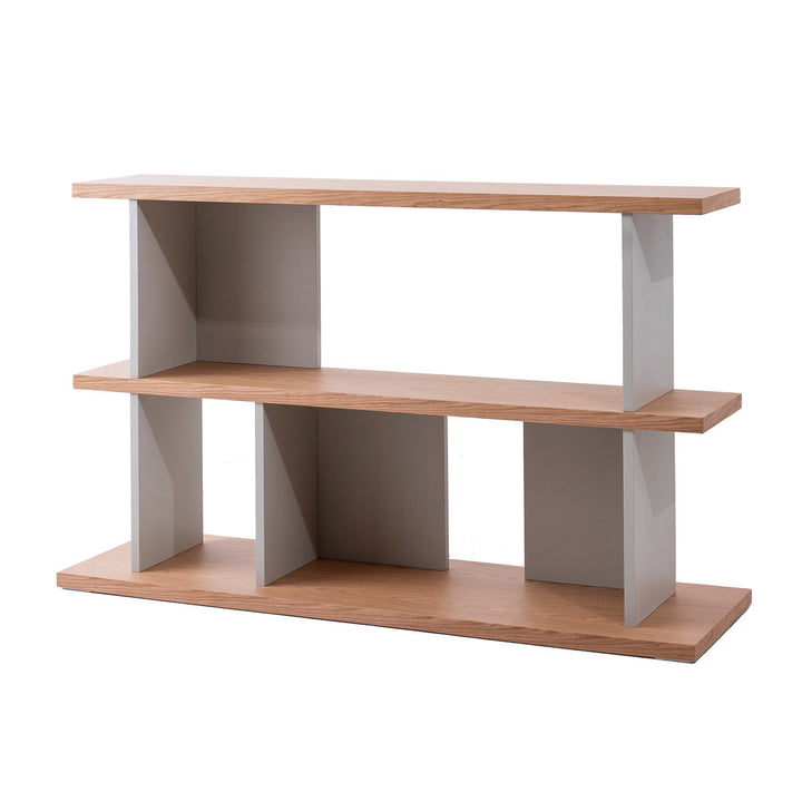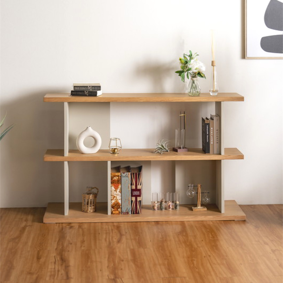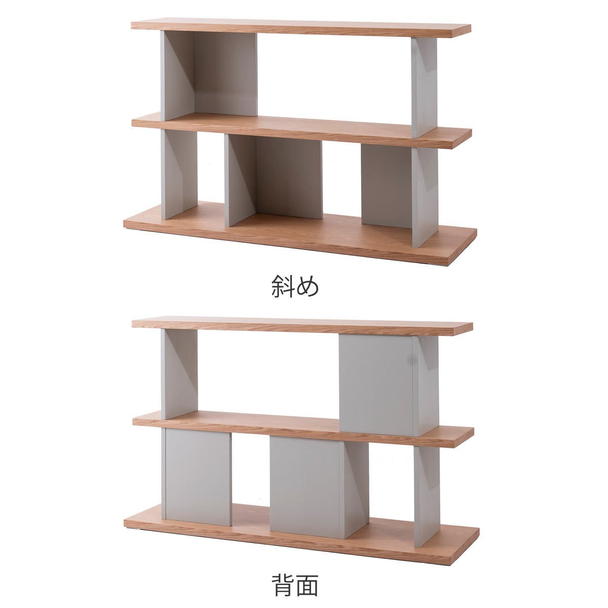 環境に配慮したFSC認証を取得した天然木工芸突板を使用したオープンシェルフです。ナチュラルなフレームとグレージュのツートンカラーが、空間に明るさと優しさをプラスします。ソファの後ろや壁付け、お部屋の間仕切りとして、3wayでお使いいただけます。