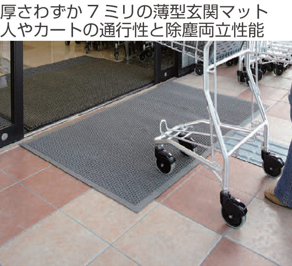 三角断面のブレードが抜群の除塵効果を発揮します。また、ダブルハニカム構造の三角穴により砂やホコリを表面に残しません。また、細かい土砂に最適。水切れも良く滑りにくいので屋外や風除室に最適です。