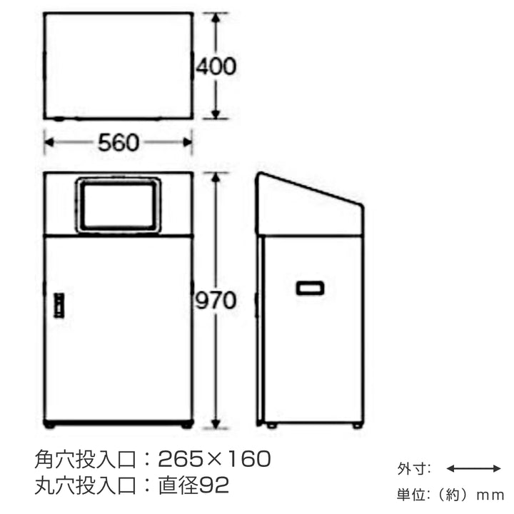 | 材質 | 本体:スチール粉体塗装 投入口:再生ポリプロピレン100% 内容器:再生ポリプロピレン100% |