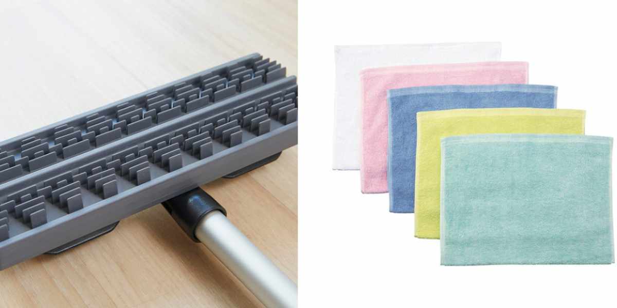 ヘッド裏の130本のゴムブレードが床面をこすり、こびりついた汚れを落とします。各社のフローリングワイパー用シート(20×30cm)に対応しています。お手持ちのクロスや雑巾はもちろん、古いタオルやハギレも使えます。