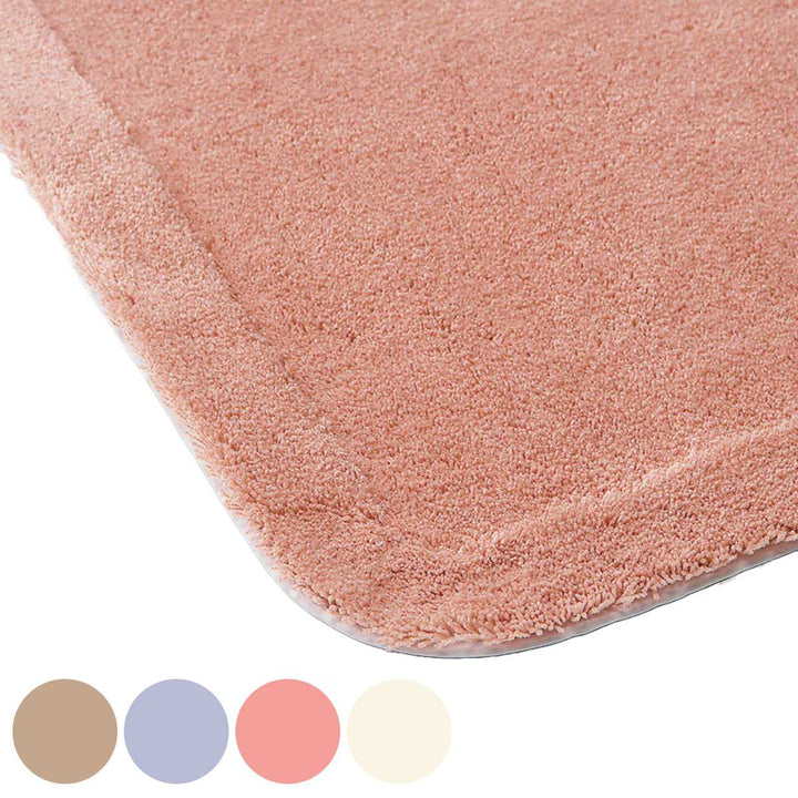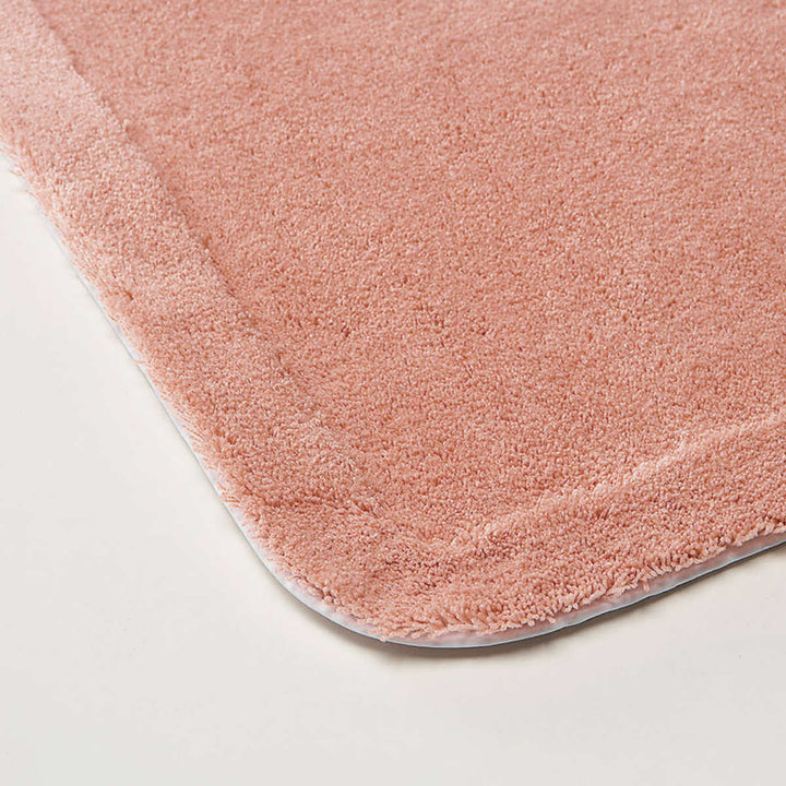 カットパイル形状(ループの山部分をカット)で柔らかい肌ざわりです。バスマットの裏面にはノンスリップ加工が施されているので、滑りにくく安心してお使いいただけます。