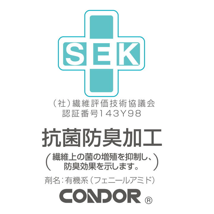 安心の加工 高い抗菌・防臭効果で、雑菌の繁殖や臭いを抑制します。 |
