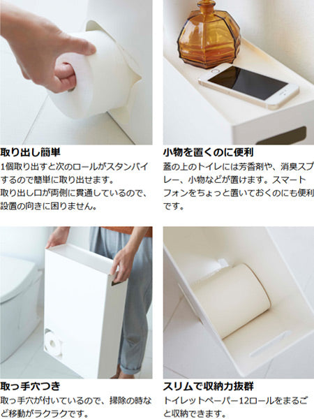 ![]() スリムで収納力抜群 トイレットペーパー12ロールをまるごと収納できます。 |