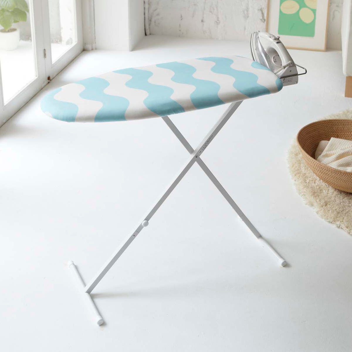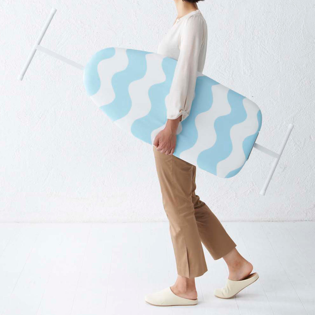 ウェーブ柄が可愛いスタンド式アイロン台です。爽やかなデザインで毎日のアイロン掛けがちょっと楽しみになりそうです。