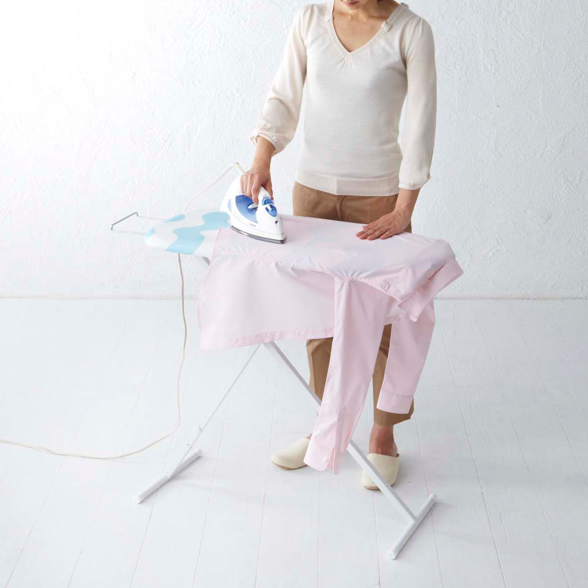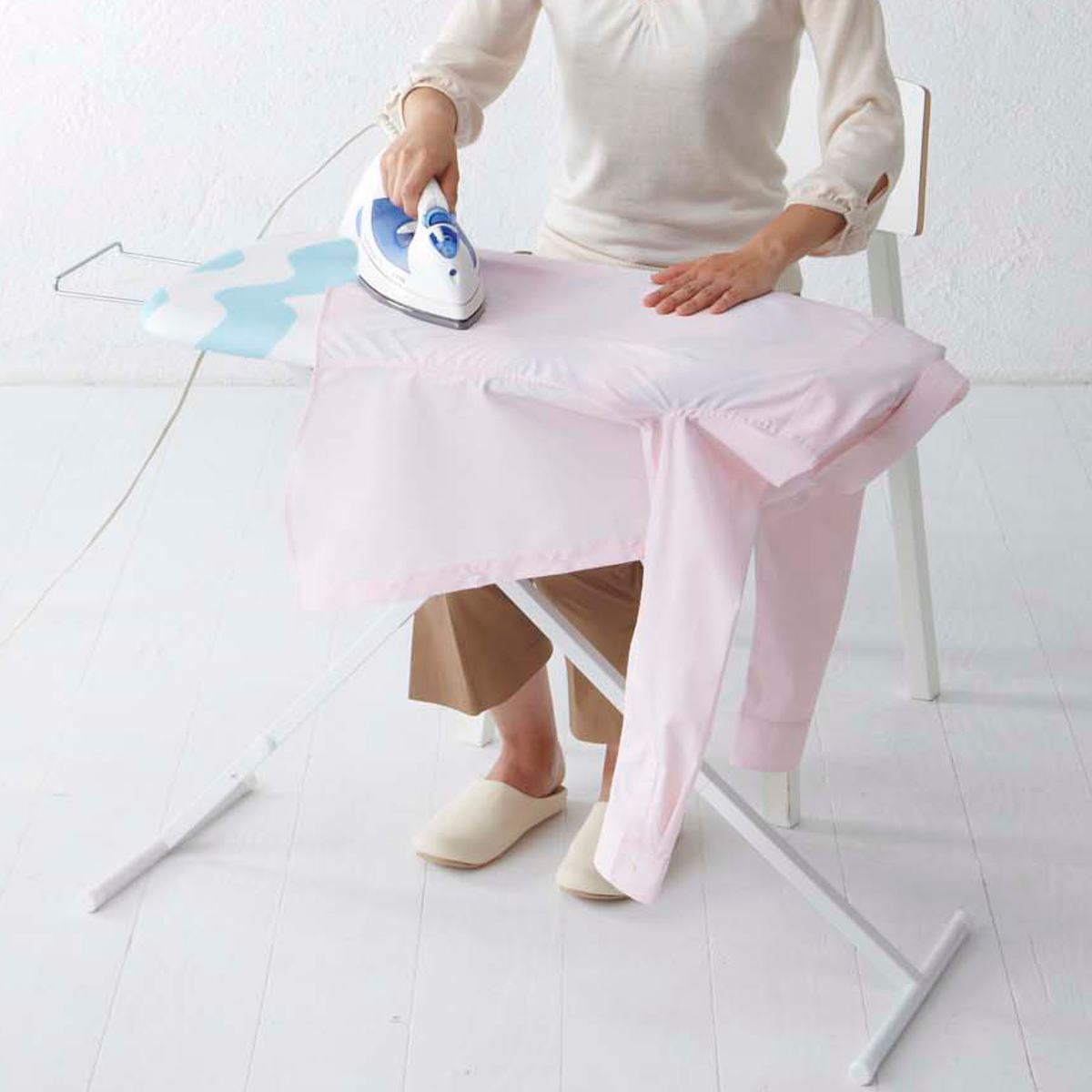 ●立って、座って、自由な高さでアイロン掛けができます。