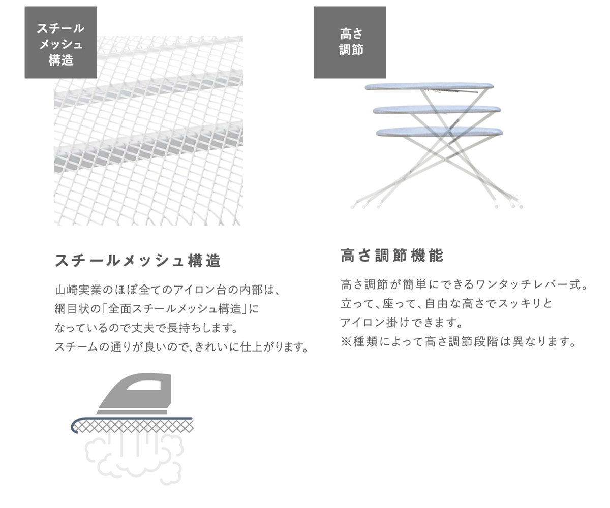 アミ目状になっているので、スチームの通りを良くします。また、スチール製なので丈夫で長持ちです。