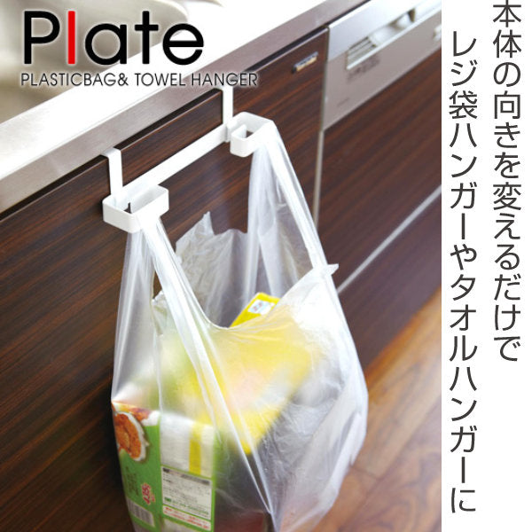 山崎実業 plate レジ袋&タオルハンガー プレート ホワイト
