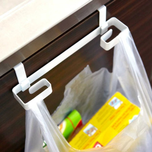 シンク下戸棚の扉に掛けるだけで簡単に設置ができます。ポリ袋を引っ掛けてゴミ入れとして使用したり、タオルハンガーにしたりとあると便利な一品です。取っ手を含まない幅約23cm以上、厚み約1.4〜2cmまでの扉に使用できます。