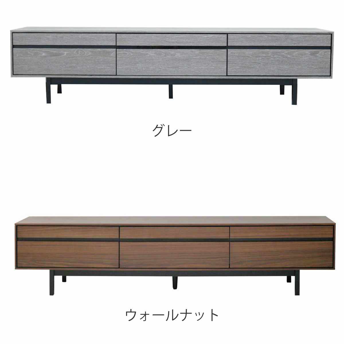 洗練されたホテルライク空間を演出する、モダンなテレビボードです。無駄のないスッキリとしたフォルムが上質な印象を与え、アンティーク感のある木目がインテリアに自然と溶け込みます。カラーはグレーとウォールナットの2色展開。お部屋の雰囲気に合わせてお選びいただけます。