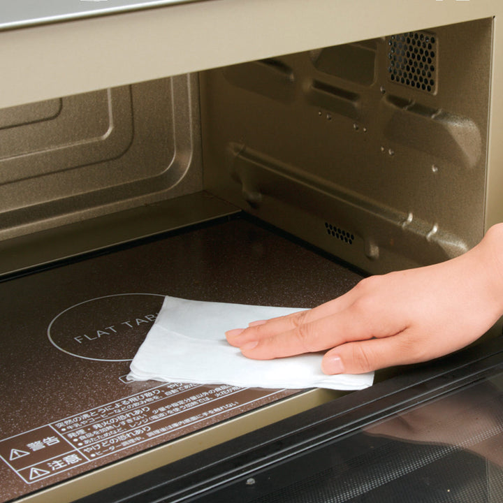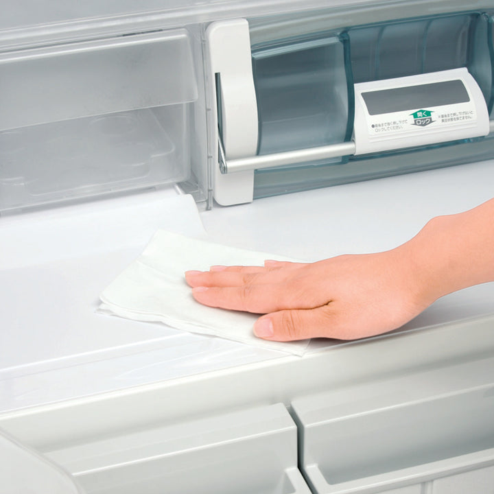 超極細繊維(マイクロファイバー)配合の特殊ウェットシートが、こぼれた調味料や料理のシミ汚れをしっかりかき取ります。洗剤を使用していないので、冷蔵庫や電子レンジの内側にも安心して使えます。アルコールの除菌効果で冷蔵庫内を清潔に保ちます。