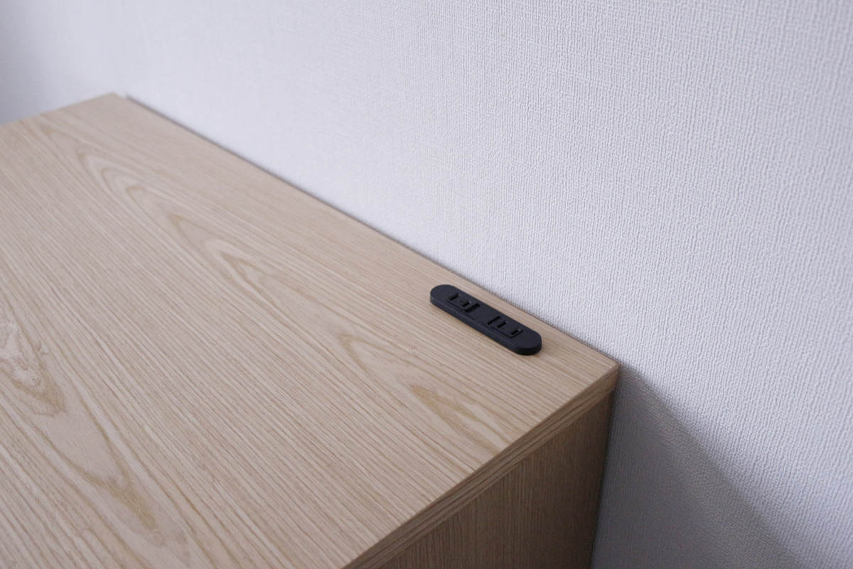 天板の後方には2口コンセント付き。コンセントは使う時だけ差し込めるスライド仕様なので、水や埃が入りにくく安心です。