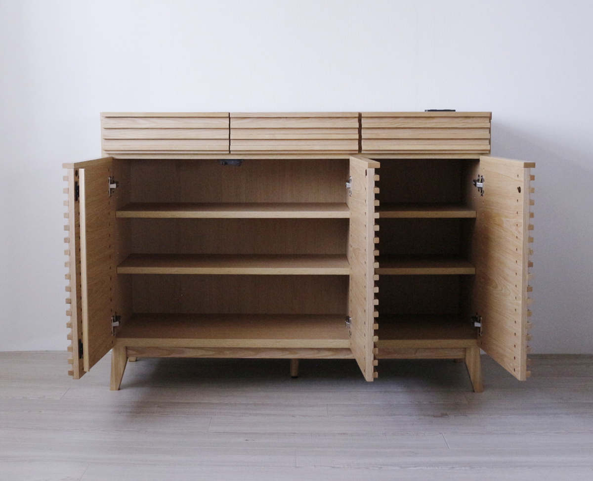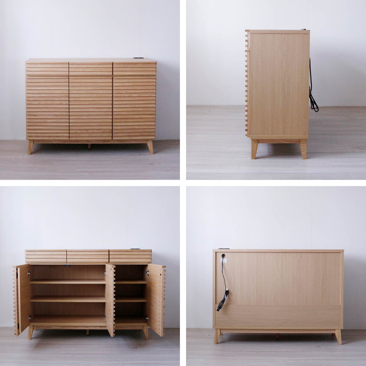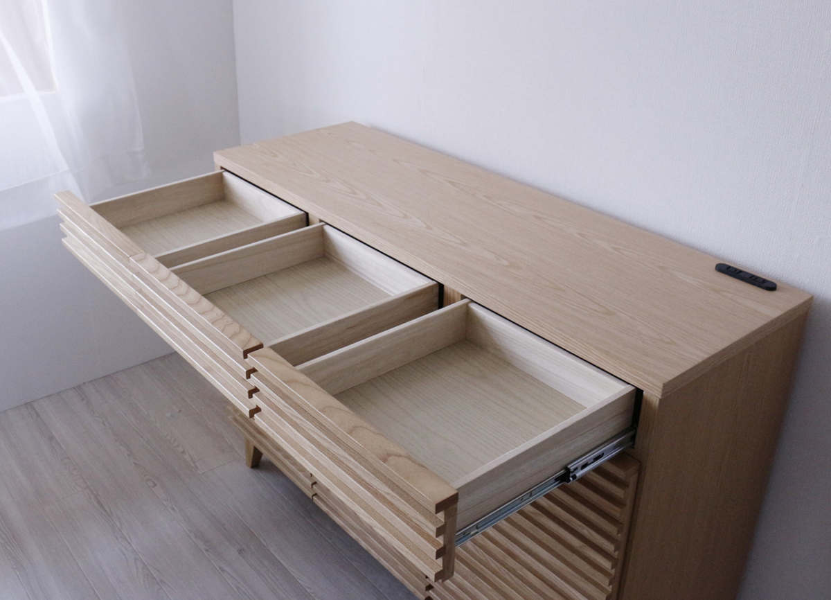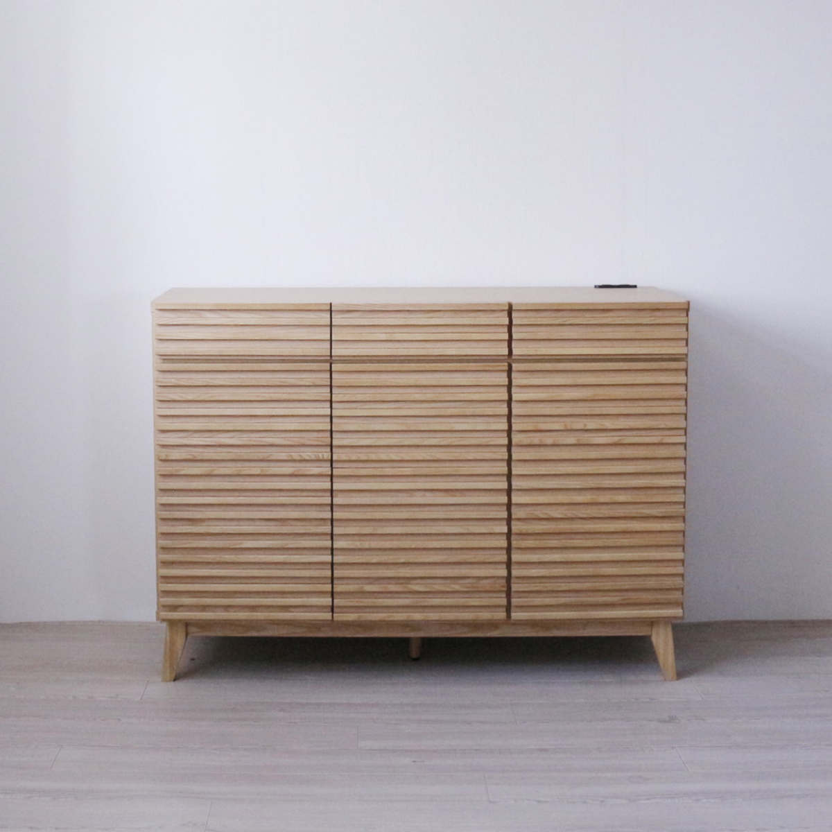 | 材質 | 天板、前板 : 突板(天然木工芸突板) ルーバー、脚: アッシュ無垢 |