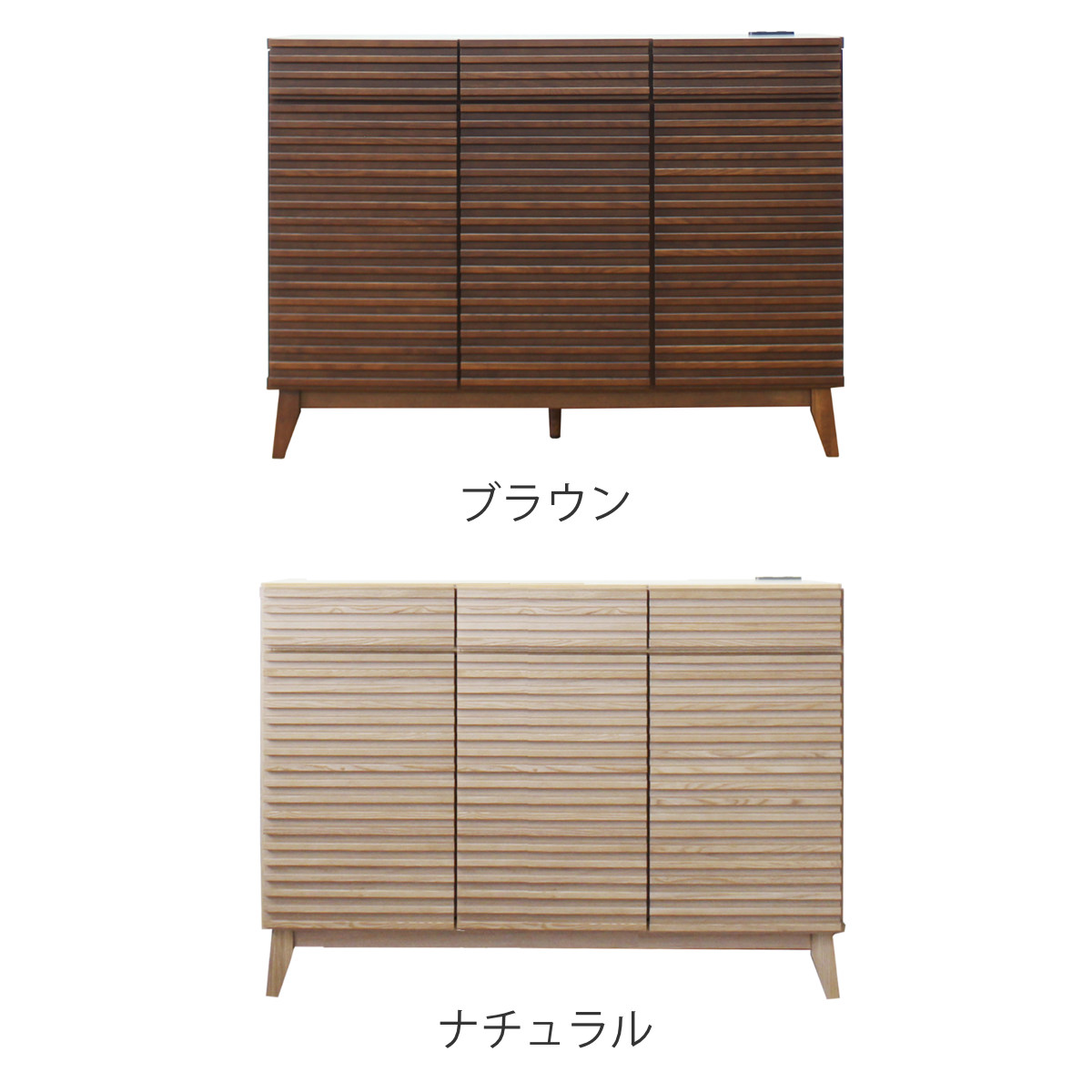 キッチンカウンター 幅120cm 2口コンセント付 ルーバーデザイン 天然木 完成品