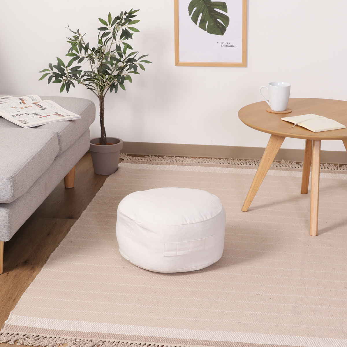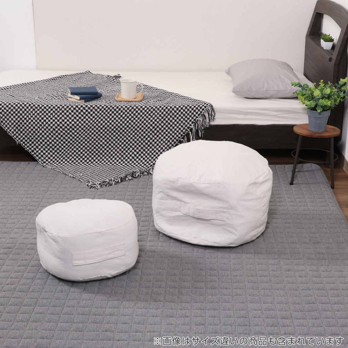 季節外のブランケット、来客用のタオル、細々とした小物類などを収納して、クッションにできる収納袋です。オフシーズンの物を収納しつつ、インテリアのひとつとして空間をすっきり整えてくれます。