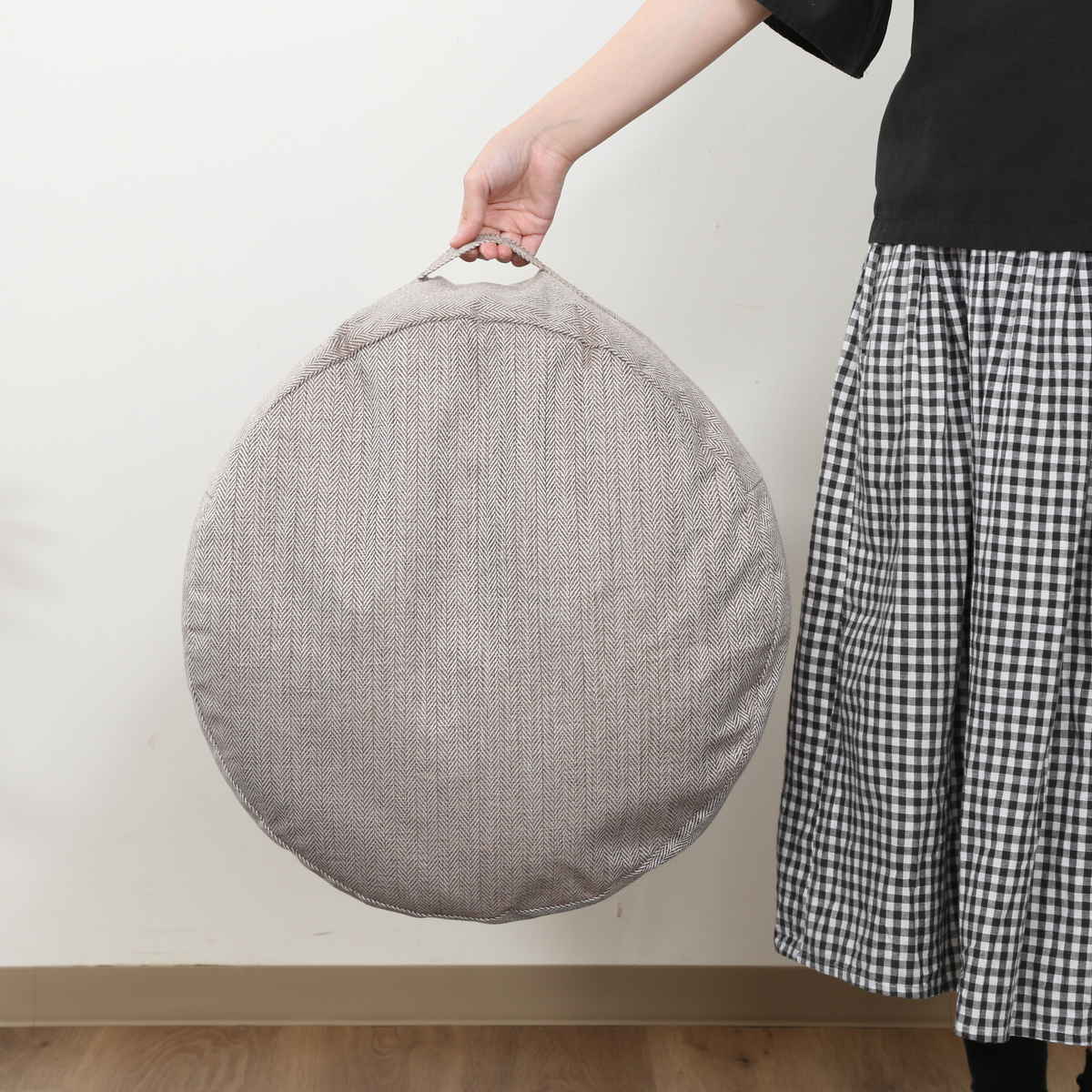 季節外のシングル布団や毛布、ブランケットや衣類などを収納して、クッションにできる収納袋です。オフシーズンの物を収納しつつ、インテリアのひとつとして空間をすっきり整えてくれます。