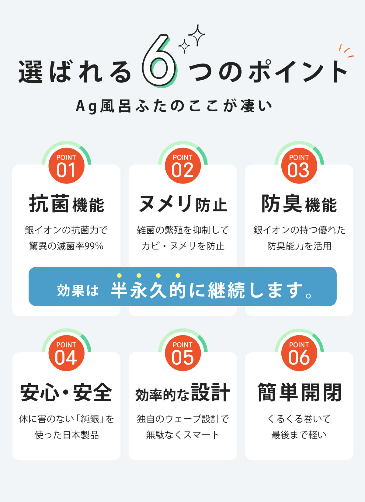 Ag銀イオン風呂ふた コンパクトなシャッタータイプ