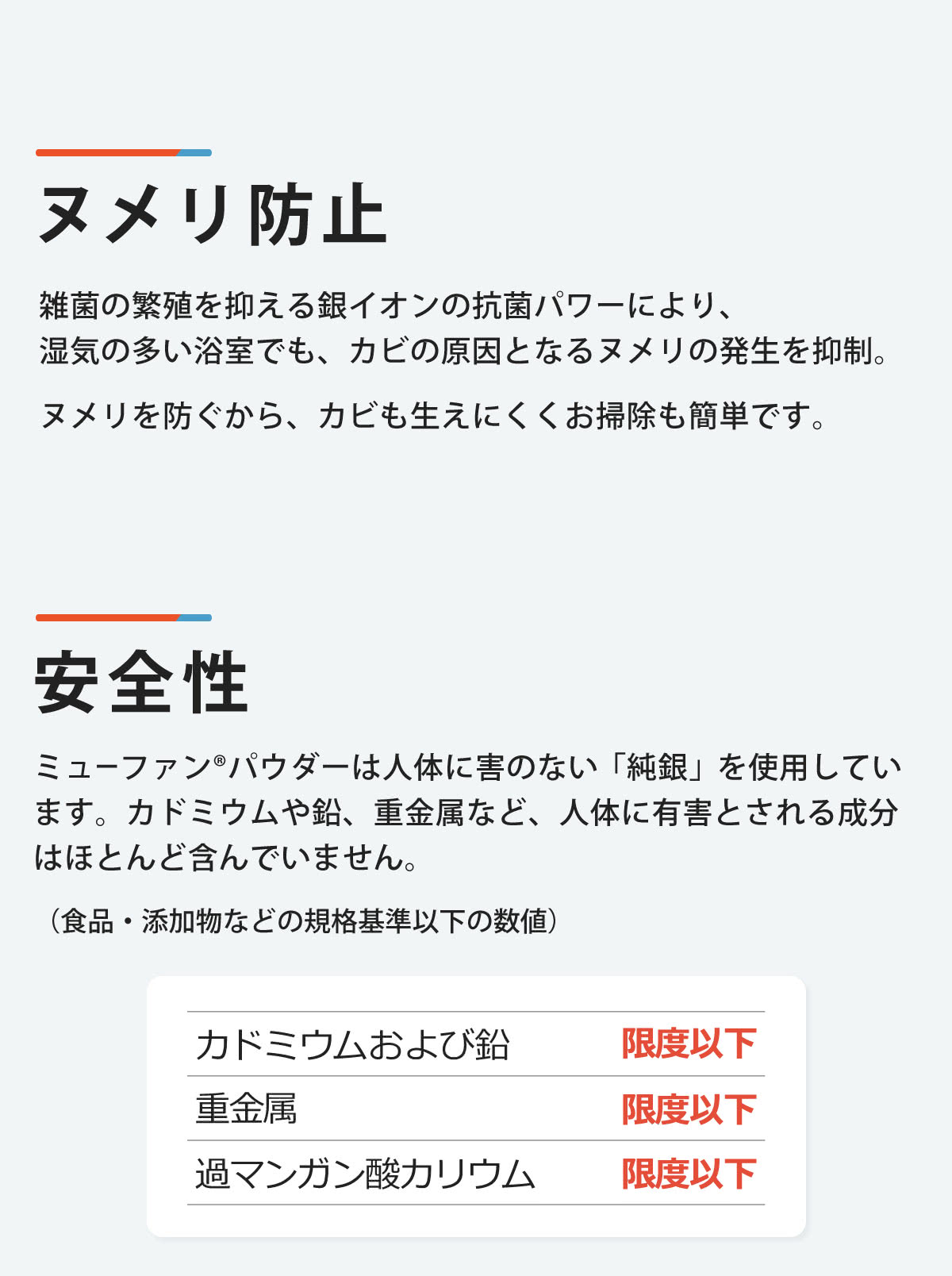 ●ミューファンパウダーは人体に害のない「純銀」を使用しているので、人体に有害とされる成分はほとんど含んでいません。