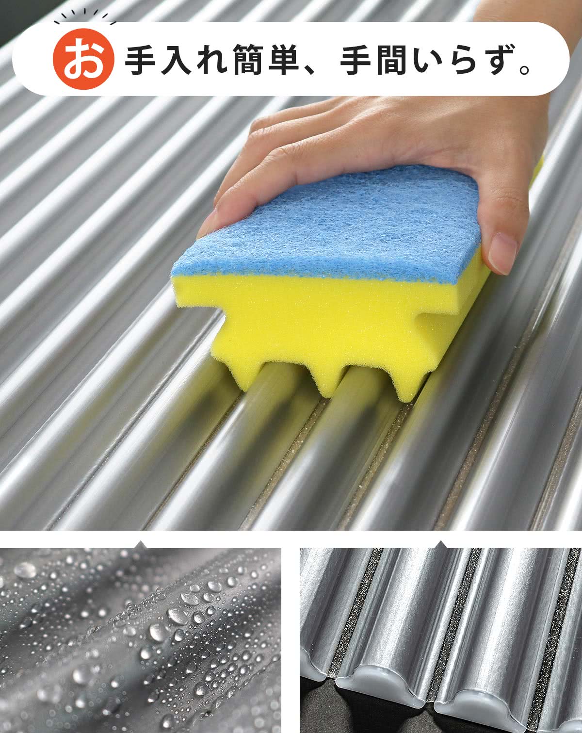 緩やかな波型形状でスポンジが溝の奥まで届くから、ヌメリが発生してもサッと洗い流せて、簡単&スムーズです。