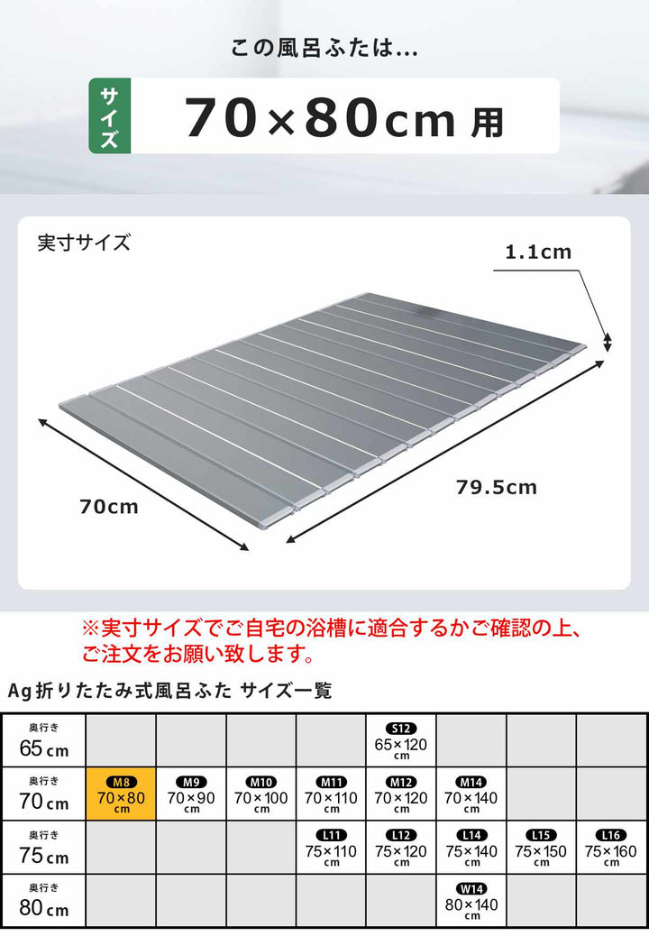 風呂ふた 折りたたみ 70×80cm 用 M8 Ag銀イオン 日本製 実寸70×79.5cm