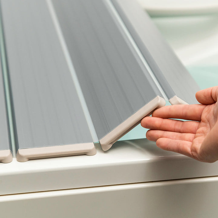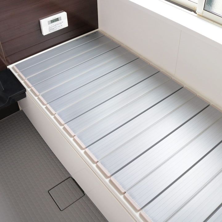 ●銀イオン配合で衛生的な省スペースに収納できる折りたたみ式風呂ふたです。